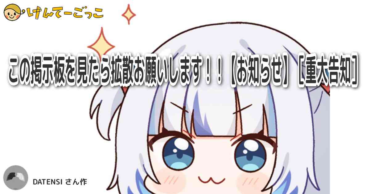 この掲示板を見たら拡散お願いします!!【お知らせ】[重大告知]